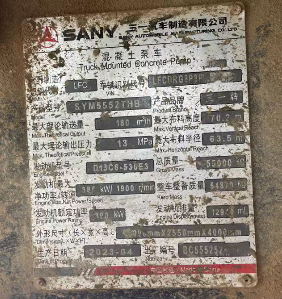 Sany SYM5552THB 71m Used Concrete Pump Truck 202304